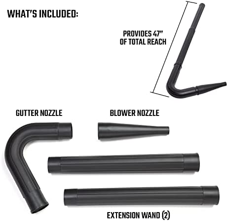 - ACCESSORIES INCLUDED: Gutter Nozzle, Blower Nozzle and 2 Extension Wands